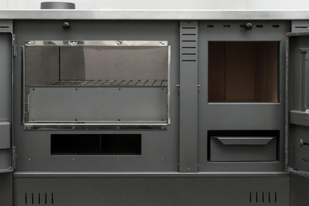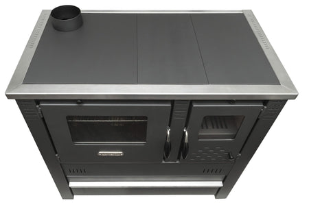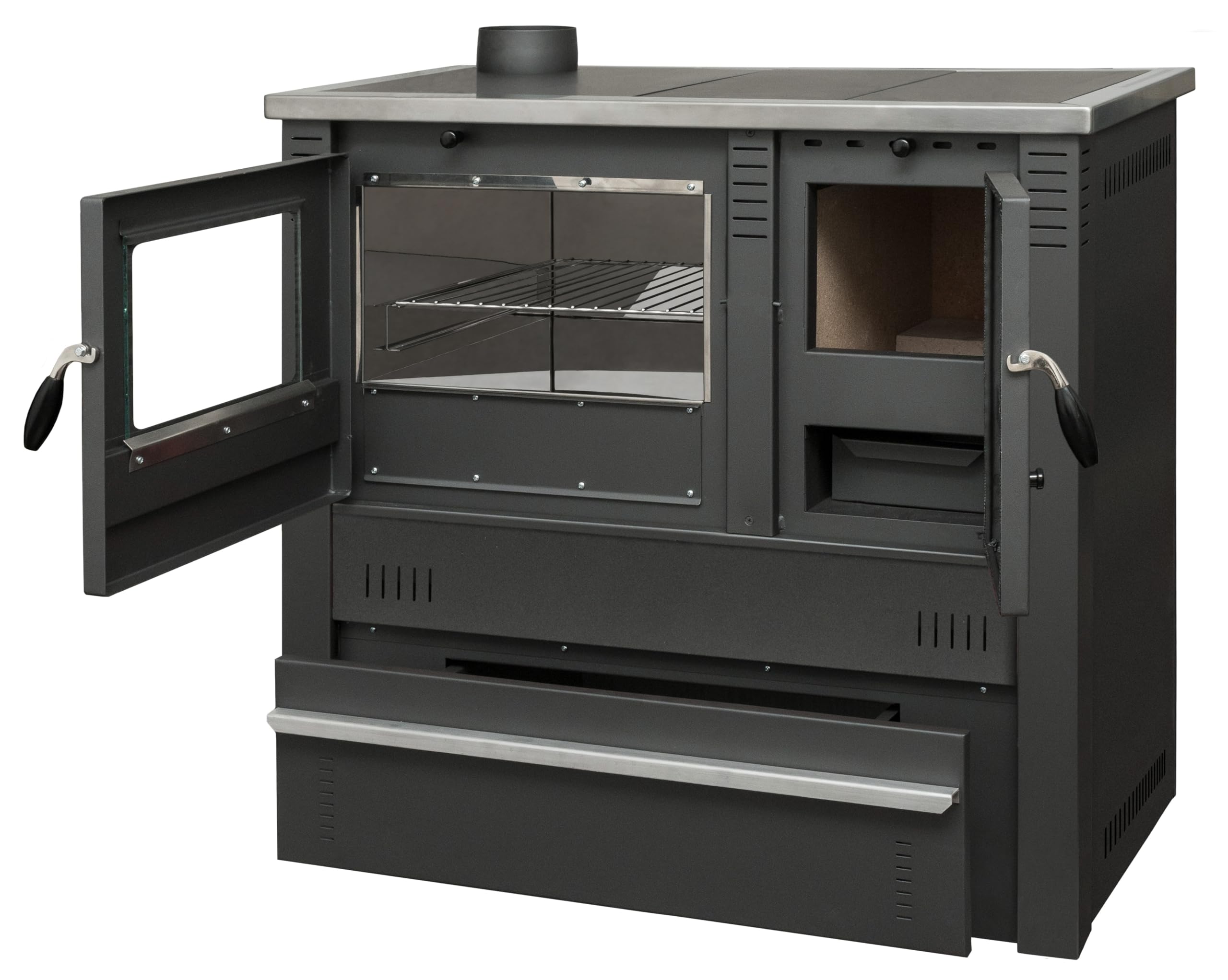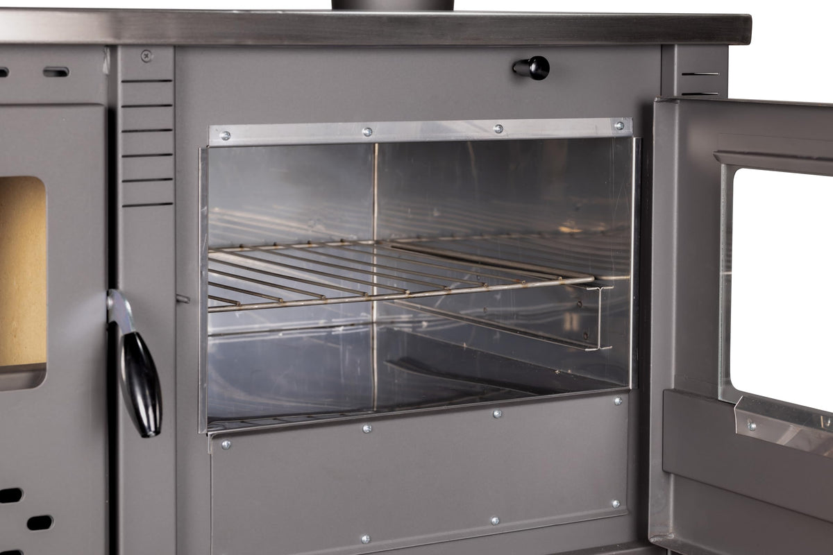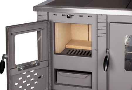 Der Pannonia ist Ihr multifunktionaler Holzofen für Küche und Wohnküche. Mit 10,54 kW beheizt er Räume bis ca. 100 m² und lässt Sie zugleich auf der Kochplatte kochen und im separaten Backfach backen. Der robuste Stahlkorpus mit Schamotteauskleidung und Keramikverkleidung speichert Wärme zuverlässig und gibt sie gleichmäßig an den Raum ab – für komfortable Temperaturen und einen ruhigen, sauberen Abbrand im Alltag.