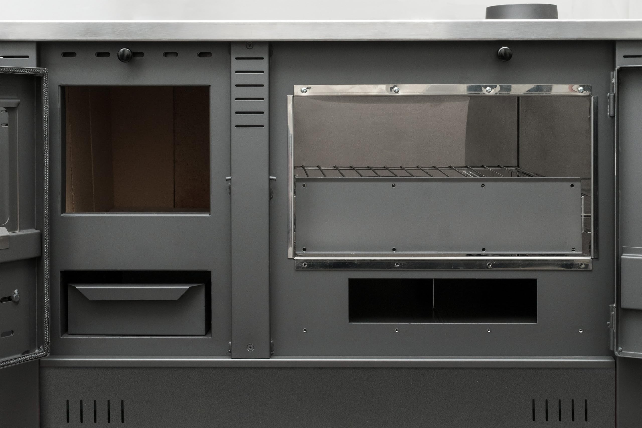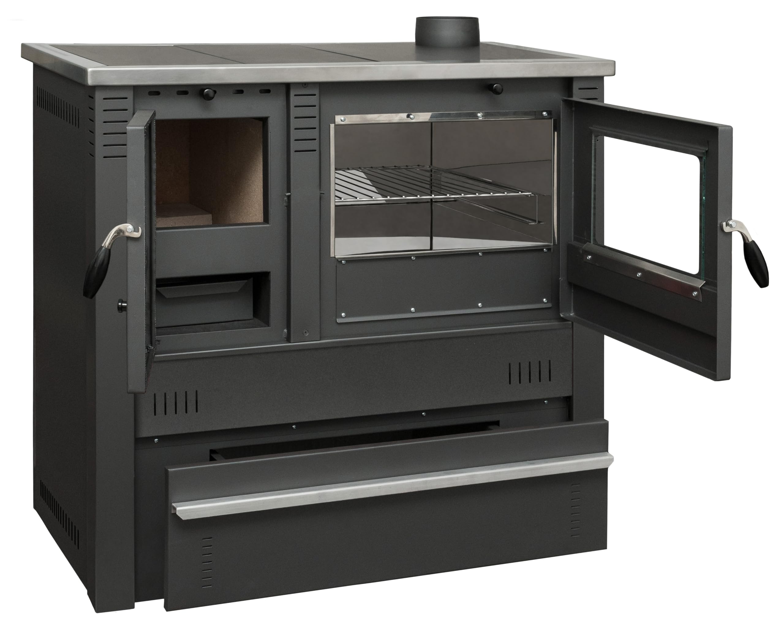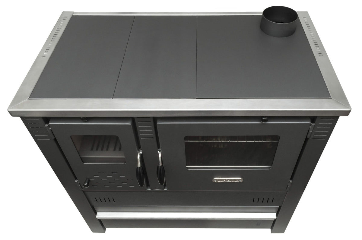 Der Pannonia ist Ihr multifunktionaler Holzofen für Küche und Wohnküche. Mit 10,54 kW beheizt er Räume bis ca. 100 m² und lässt Sie zugleich auf der Kochplatte kochen und im separaten Backfach backen. Der robuste Stahlkorpus mit Schamotteauskleidung und Keramikverkleidung speichert Wärme zuverlässig und gibt sie gleichmäßig an den Raum ab – für komfortable Temperaturen und einen ruhigen, sauberen Abbrand im Alltag.