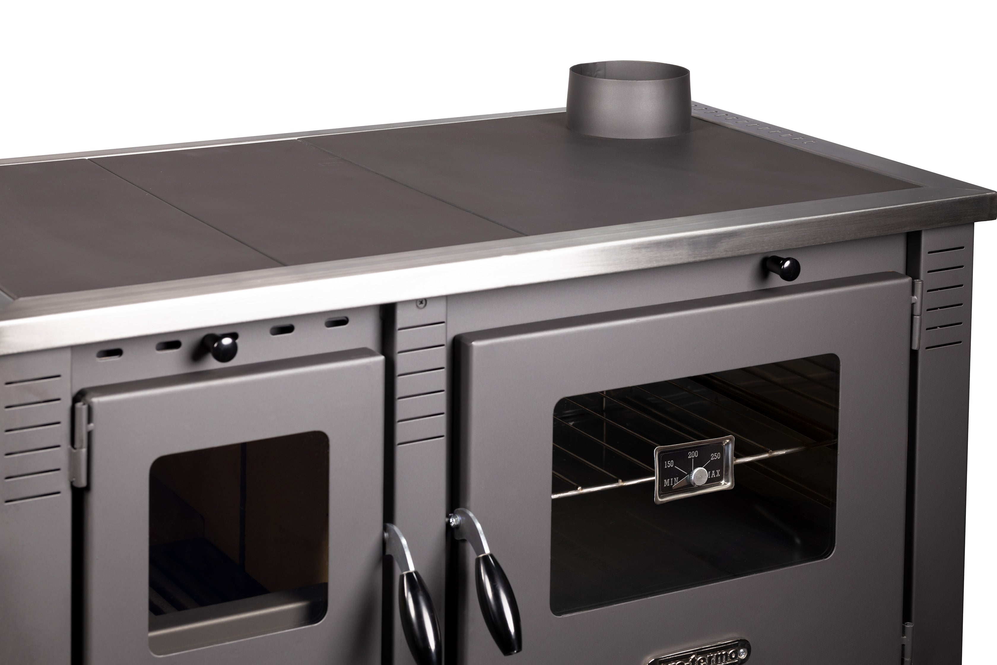 Multifunktional: Heizen, Kochen und Backen in einem Gerät – dank 3 separater Kammern (Feuerraum, Ofen, Kochplatte).