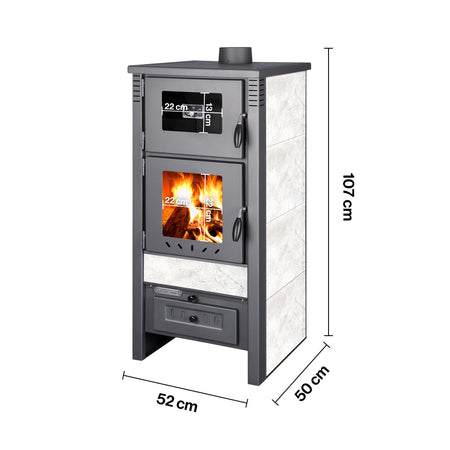 ProTermo Taurus Kaminofen mit Backfach Weiß 12,05 kw | Bauart 1